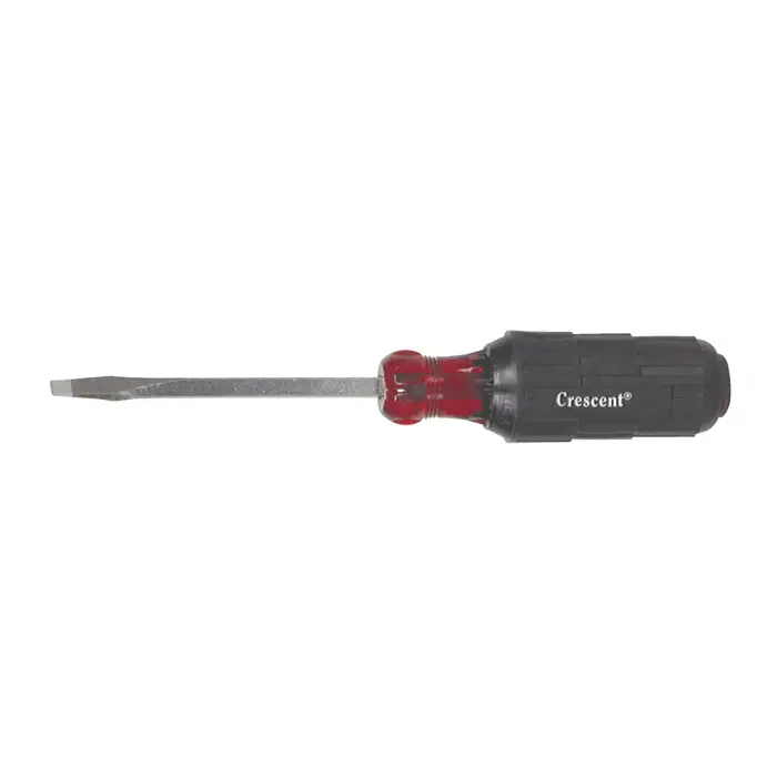 A screwdriver is a handheld tool primarily designed for tightening or loosening screws. It consists of a handle, typically made of plastic or wood, and a metal shaft with a flat or cross-shaped tip called a blade or a bit. The blade is inserted into the screw head, and by applying force and rotating the handle, the screwdriver engages with the screw threads, allowing for effective turning.