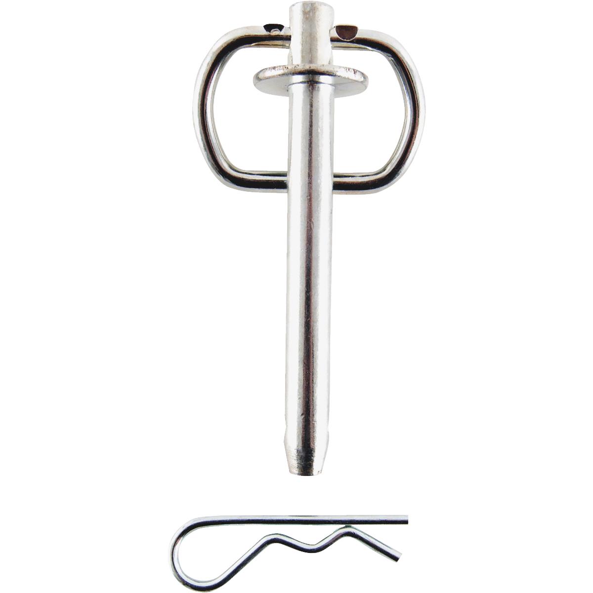 Universal hitch pin assembly. Complete with hitch pin, clip, clevis pin, and washer. Zinc-plated. 1/2 In. x 5 In. No. HPA-20: Pin Diameter: 1/2 In., Useable Length: 5 In., Type: Handle, Material: Steel, Finish: Zinc-Plated, Pkg Qty: 1, Package Type: Hang Tag. Warning: Cancer and Reproductive Harm – www.P65Warnings.gov