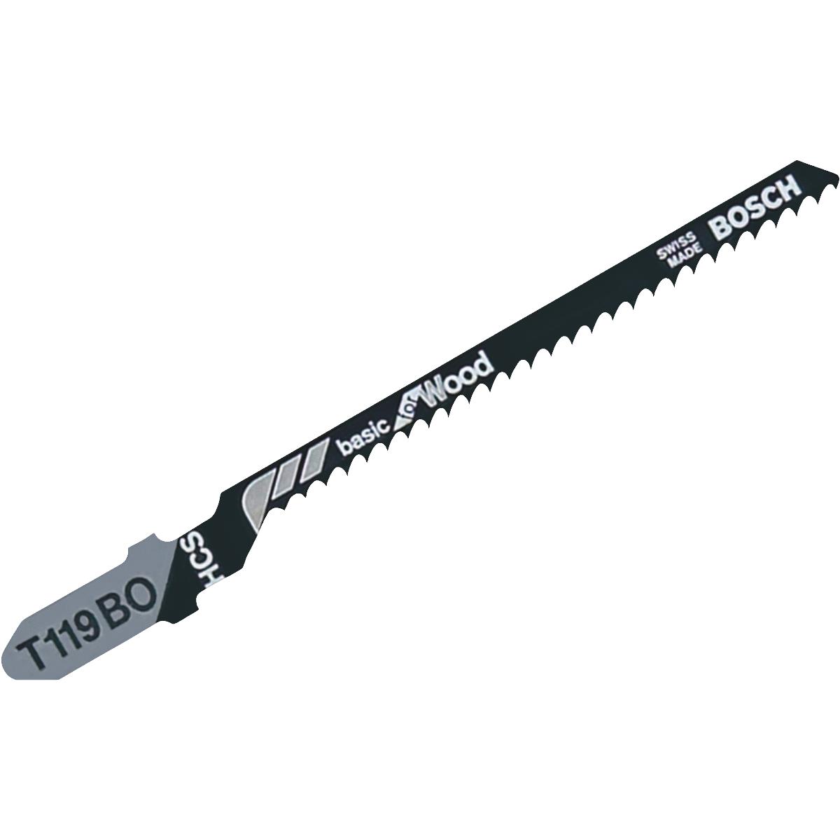 Features Bosch style Tang shank, (T-shank). Eliminates set-screw mounting hole, which is most common breaking point on Universal Mounting jigsaw blades. Packed 5 blades per card.