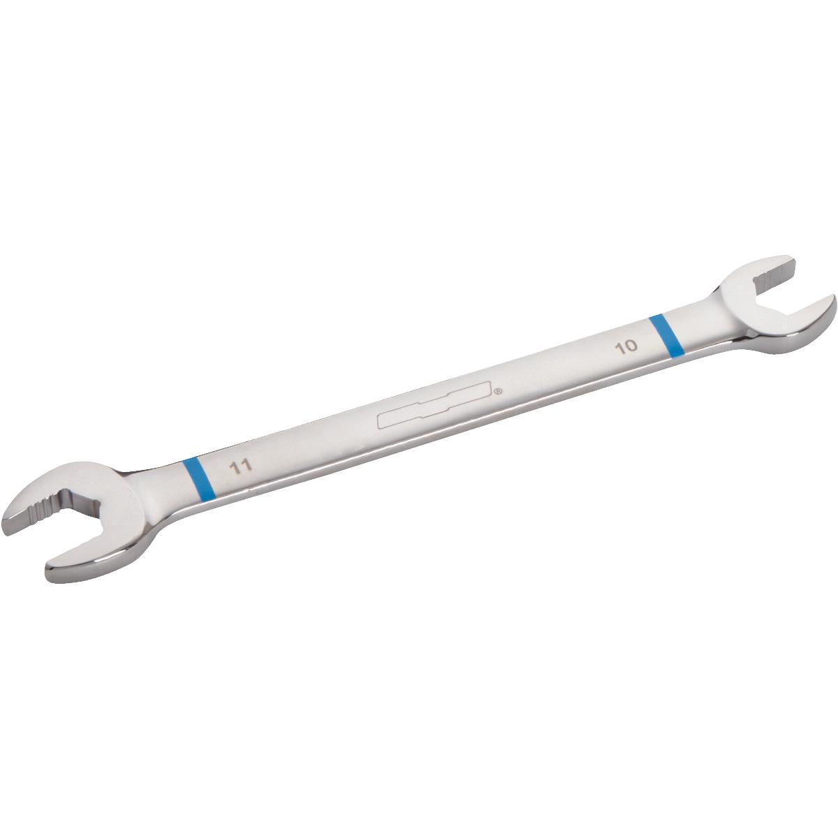 Color band denotes SAE/Metric measurement for easy identification. Feature non-slip open end. Chrome vanadium steel. Fully polished for professional appearance. Lifetime warranty.