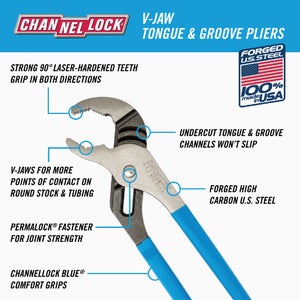 - CHANNELLOCK BLUE grips for added comfort and reduced hand fatigue