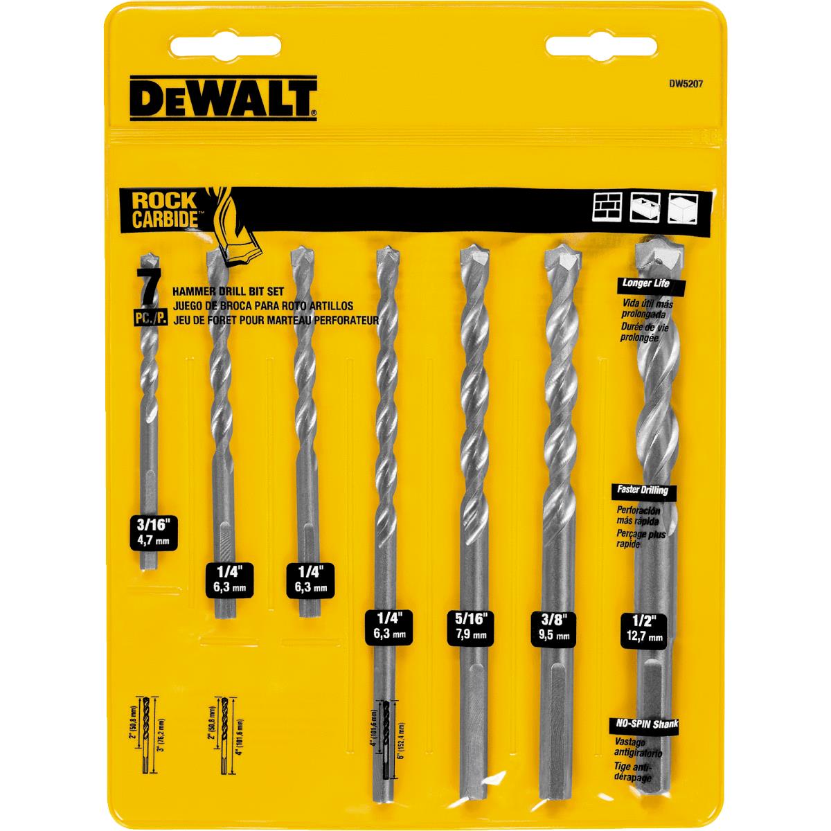 Optimum grade carbide tip maximizes durability and longevity. Innovative tip reduces walking on material surface. Unique flute design removes dust reducing bit binding. Set includes: (1) 3/16″ x 3″ (1) 1/4″ x 4″, (2) 1/4″ x 6″, (1) 5/16″ x 6″, (1) 3/8″ x 6″, (1) 1/2″ x 6″.