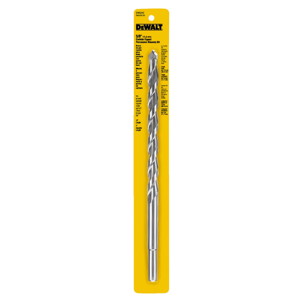 Piloted carbide tip design improves bit life. Hardened body for extra strength and reduced breakage. Four flute design provides efficient dust removal to reduce heat build-up also adding to bit life. Two cutter carbide tip maximizes carbide surface contact for longer bit life. For use in percussion and rotary drilling applications in rotary drills and hammer drills. 1 bit per pouch.