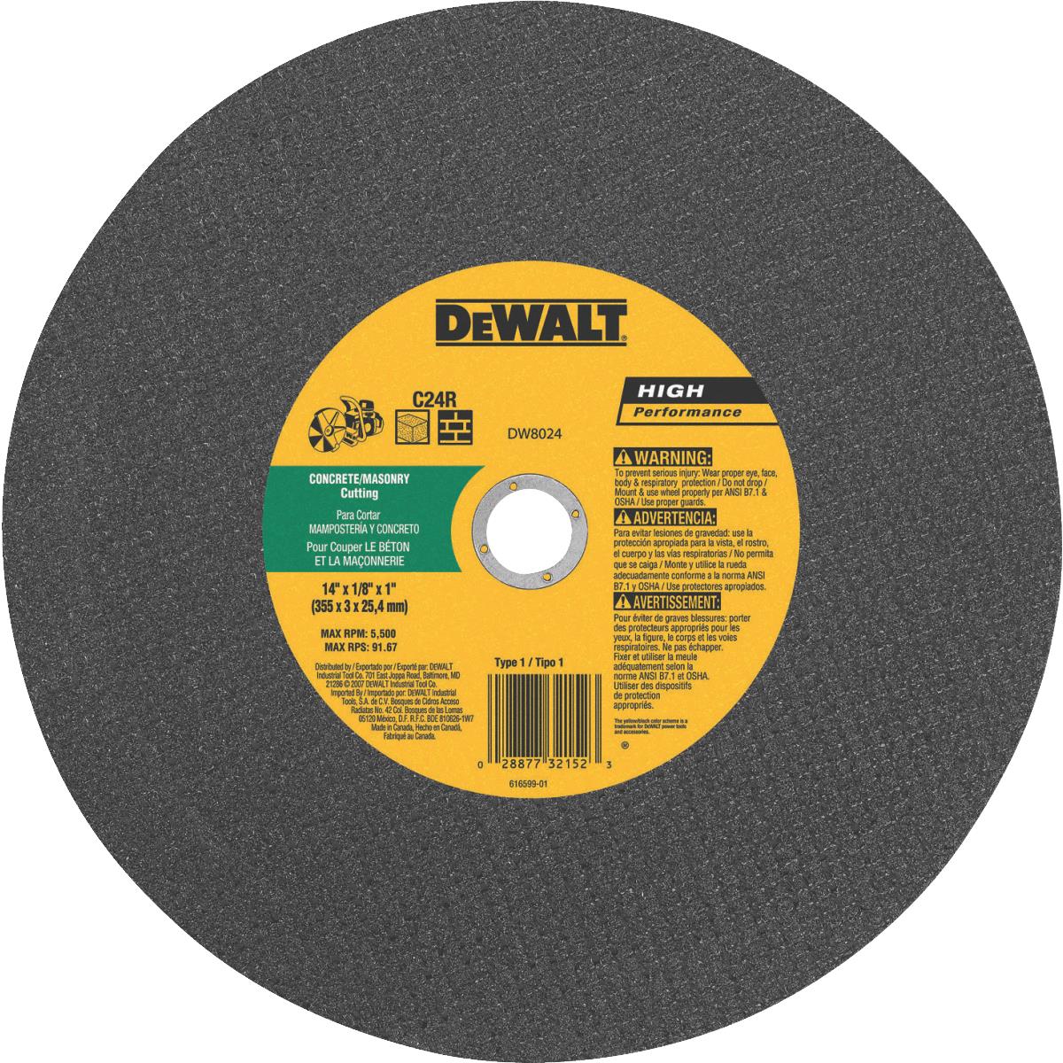 DEWALT HP Type 1 14 In. x 1/8 In. x 1 In. Concrete Cut-Off Wheel (DW8024)