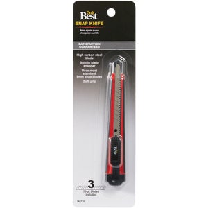 Professional Snap-Off Knife features an auto lock slide for faster blade adjustments. The knife includes 3 ultra-sharp, blackened carbon blades which are extra keen and sharper than standard snap blades. The stainless-steel track and heavy-duty soft-grip allow for easy and comfortable use. Use the blade snapper to easily and safely expose a new sharp point.
