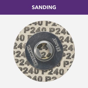 - Allows for flat sanding and edge sanding. Lasts twice as long and removes twice as much material than regular Dremel sanding discs