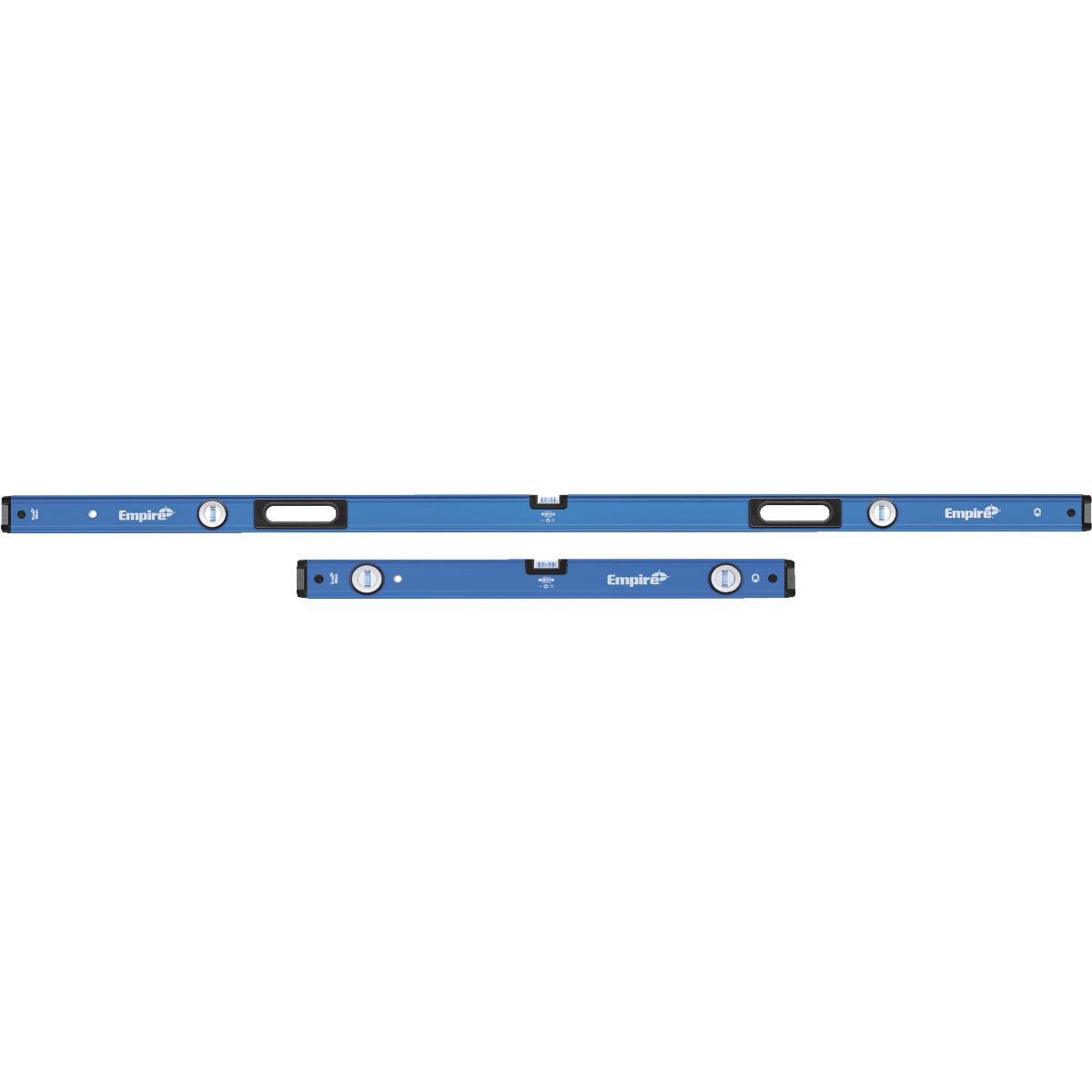 Solid block acrylic vials resist breaking, leaking and fogging. 300 degree view True Blue vials with top-reading window. Accurate to within 0.0005 In. (inch) per inch in all 10 level and plumb working positions. Rare Earth magnets hold onto ferrous surfaces. Heavy-duty 6061 T5 aircraft aluminum chassis provides durability. eLock Center Vial System is mechanically locked in place and is secured with two-part epoxy. Removable eShock Pro impact absorbing, accordian-style end caps. Accu-Edge2 frame profile is precision milled for greater accuracy. One-piece ergonomic rubber hand grips limit hand fatigue. No. EM75JAMB: Style: Box, Length: 78 In. & 32 In., Magnetic: Yes, Material: Aluminum, Pkg Qty: 2, Package Type: Hang Tag.