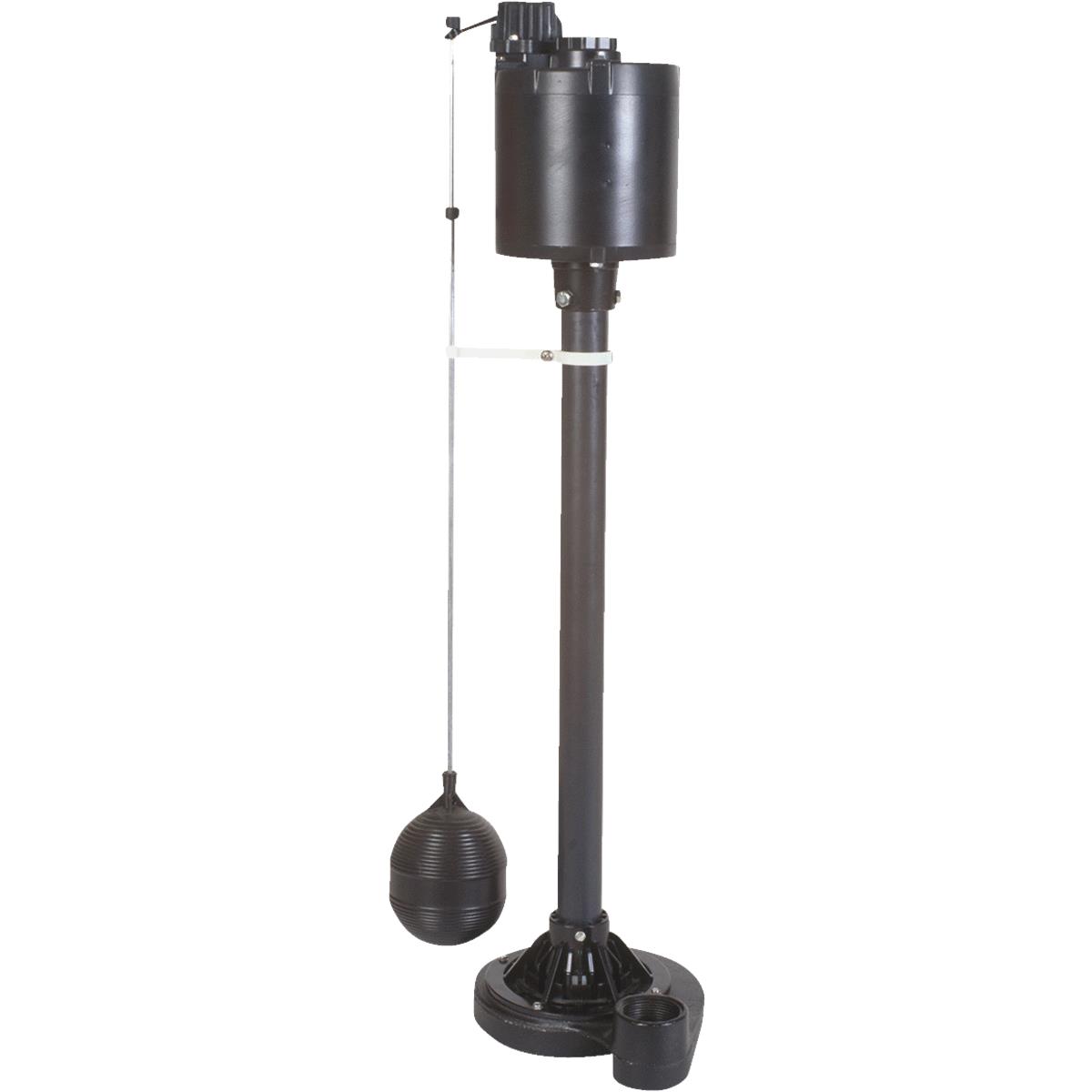 1/2 HP Pedestal Sump Pump. Cast iron base with a stainless steel column for stability and long life. 1-1/2 In. discharge. Thermal overload protection will keep the motor from overheating. Waterproof cord with grounded plug. Fits in a 12 In. or larger sump pit. Pumps 3900 GPH at 0 Ft. lift. 2 year limited warranty.