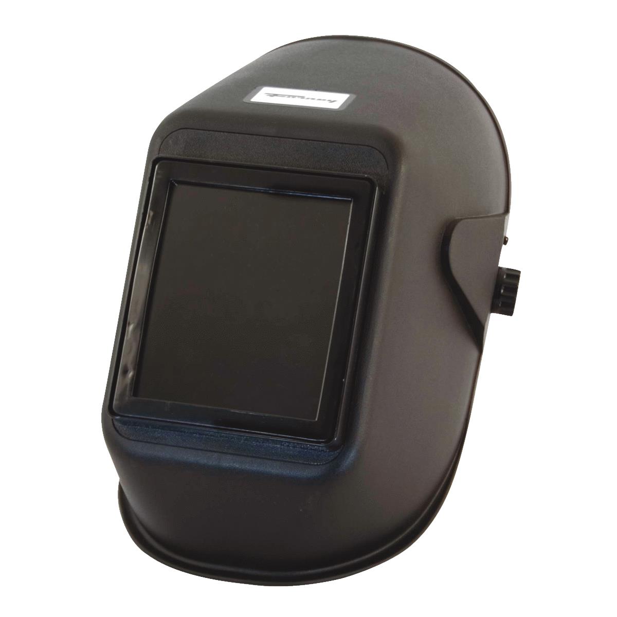 The Bandit II welding helmet. Lightweight, durable polymer material. 4-1/2″ x 5-1/4″ fixed front. Ratchet headgear, clear lens, and #10 shade lens included. No. 55673: Color: Black, Lens Length: 4-1/2″, Lens Width: 5-1/4″, Helmet Material: Polymer, Pkg Qty: 1. WARNING: This product contains chemicals known to the State of California to cause cancer and birth defects or other reproductive harm.