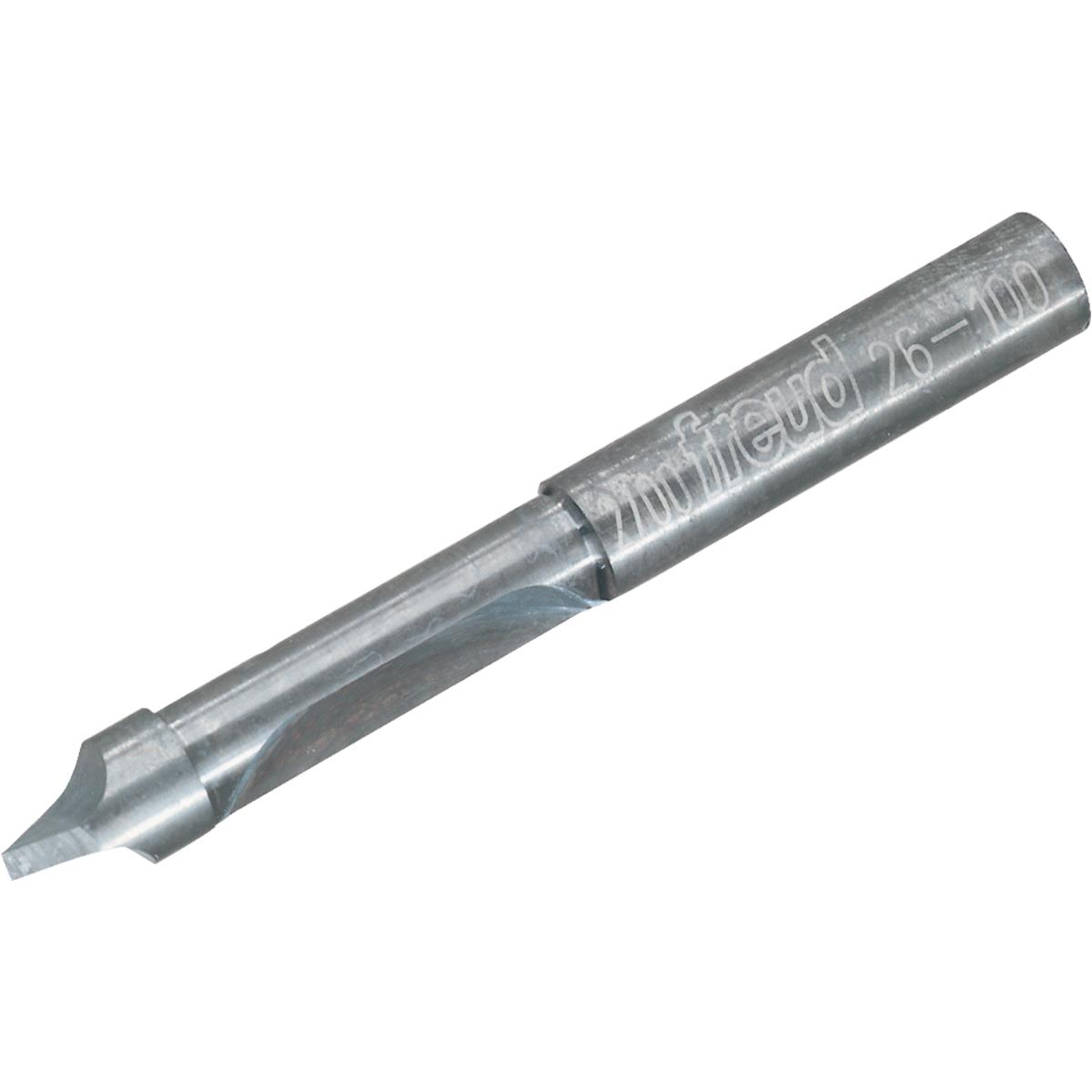 Use for template work and cutting openings in paneling, siding, etc. These bits will outlast high speed steel bits many times before sharpening. The drill through point allows self-starting, and the pilot acts as a guide for template work. Cuts all composition materials, plywoods, hardwoods, and softwoods. Use on portable routers for template work. No. 26-100: Material: Carbide, Length: 2-1/4″, Shank Diameter: 1/4″, Diameter: 1/4″, Number of Flutes: Single No. 26-104: Material: Carbide, Length: 3-3/4″, Shank Diameter: 1/2″, Diameter: 1/2″, Number of Flutes: Single No. 28-100: Material: Carbide, Length: 3″, Shank Diameter: 1/4″, Diameter: 3/8″, Number of Flutes: Double No. 28-104: Material: Carbide, Length: 3-3/4″, Shank Diameter: 1/2″, Diameter: 1/2″, Number of Flutes: Double.