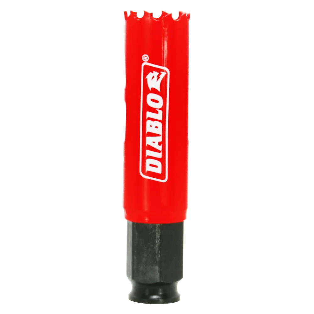 Diablo’s new, high performance hole saws deliver faster cutting performance and increased productivity. Unlike anything on the market, Diablo’s hole saw system and mandrel design simplify the attachment process for fast and efficient hole saw mounting. These radical new hole saws provide ultimate cutting length to bore deeper holes in a single pass, tool-free plug ejection and Variable Tooth Design for faster cuts. Mandrel and pilot bit sold separately.