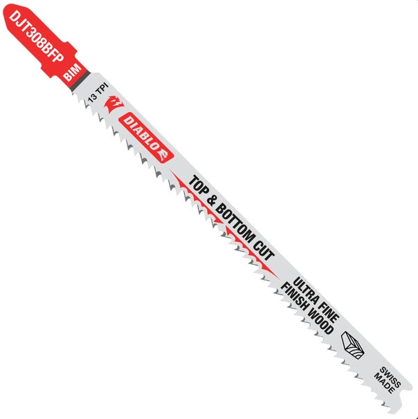 Diablo’s bi-metal teeth jig saw blades are specifically designed for maximum durability and longer life in wood, metal and plastic applications. These high-performance blades feature an ultra-hardened cutting edge to deliver up to 5X longer life than standard blades. The optimized blade design and Perma-SHIELD non-stick coating reduces heat and pitch build up for effortless, clean cuts. T-shank design fits all combo and most U-shank cordless and corded jig saws.