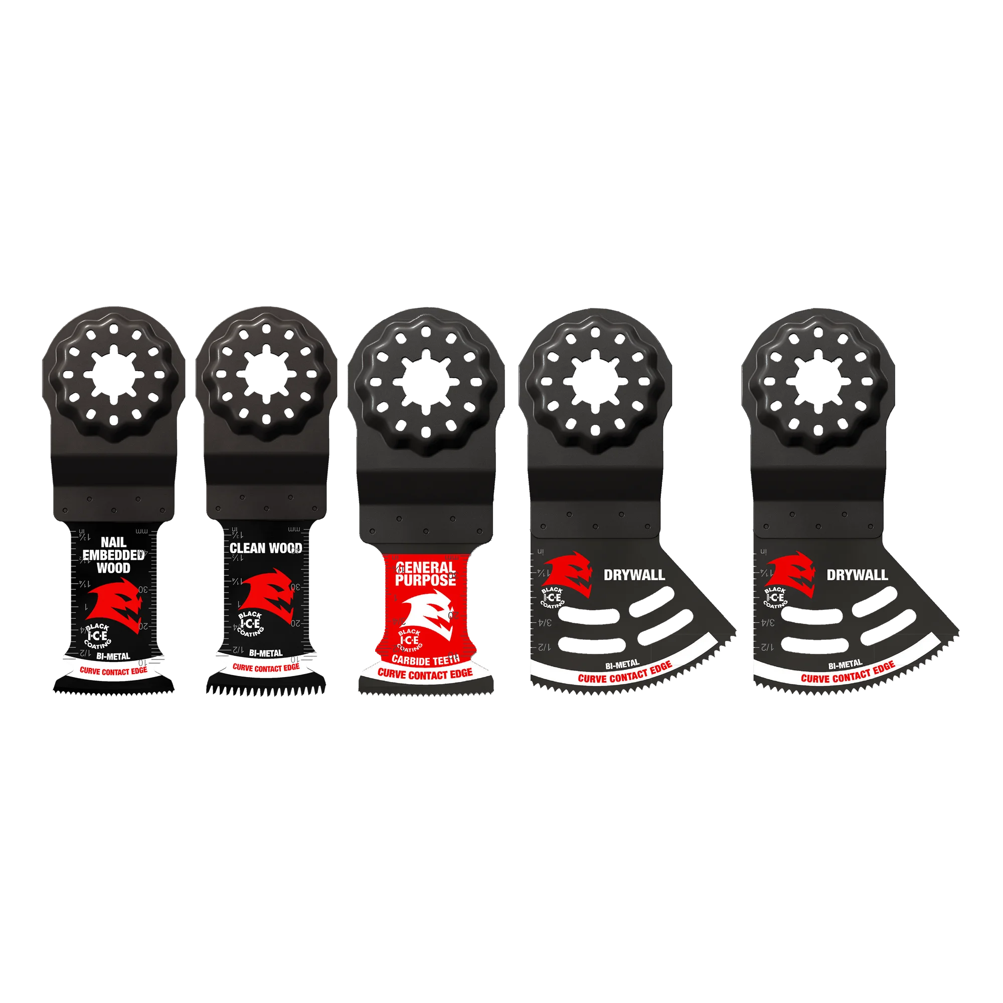 Diablo’s Starlock oscillating blade set features application specific blades ranging from nail-embedded wood, clean wood, metal, plastics and drywall. Included are high-performance carbide and bi-metal blades sure to deliver unmatched durability, life and quality of cut in any job. Tool free quick-change interface fits Fein and other Starlock tools; also compatible with most non-Starlock multi-tools.