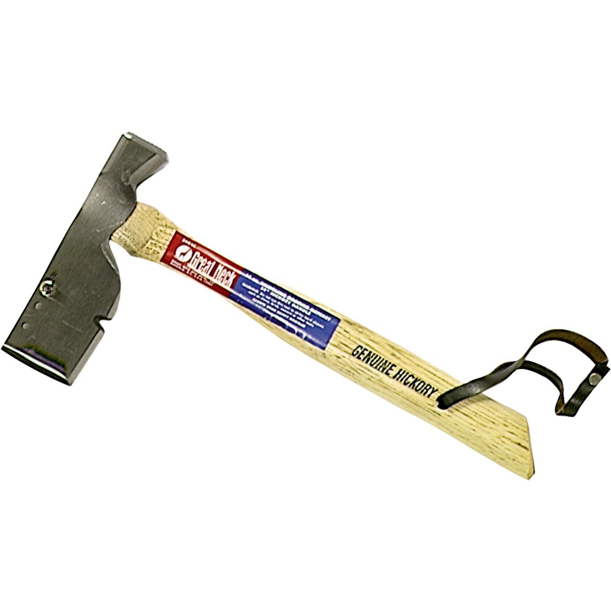 Hickory wood handle. Forged head, fully polished. Milled crown face. 3-hole gauge adjusts in 1/2″ increments. For use with metric and standard shingles. Nail slot. Leather strap. 2-1/8″ cut, 20 oz., 13″ long. No. SHR14: Head Weight: 20 Oz., Handle Material: Hickory, Length: 13 In., Pkg Qty: 1.