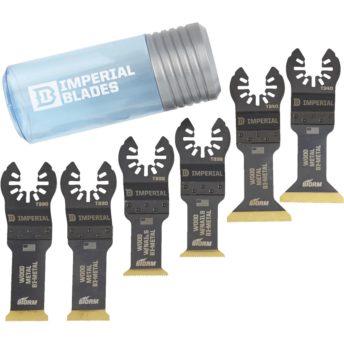 Titanium-coated, bi-metal teeth give blades longer life. High speed steel blades are optimized for wood, metal, and PVC (polyvinyl chloride). Features ONE FIT universal system allowing blades to fit most multi-tools/oscillating tools. Adapter included to fit Dremel Quick Release and old Rockwell. Includes 2 blades each of IBOAT330, IBOAT336, IBOAT340, and storage/carrying case. No. IBOATV-6: Pieces In Set: 6 Pcs., Pkg Qty: 6, Package Type: Clamshell.