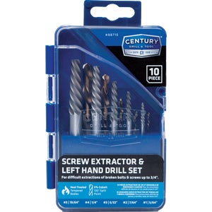 Left Hand Cobalt Drill Bits And Spiral Screw Extractor Set 10Pc. Set Includes: Cobalt Left-Hand, 135 Degree Split Point Drill Bits Sizes, 5/64″, 7/64″, 5/32″, 1/4″, 19/64″ And #1, #2, #3, #4, #5 Spiral Screw Extractors.