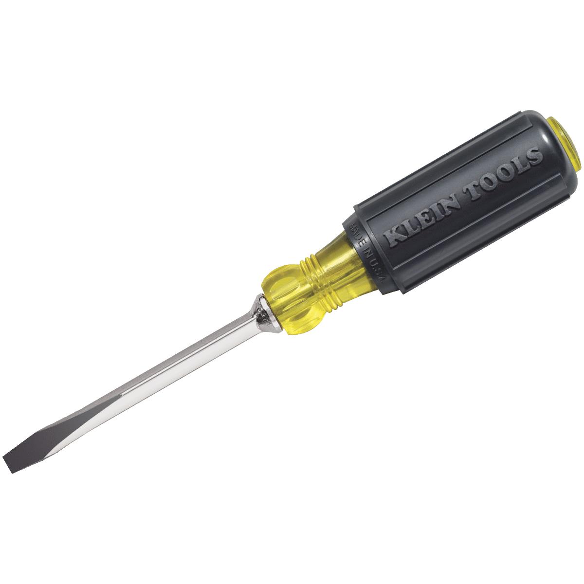 Heavy-duty square shank for wrench-assisted turning. Cushion-grip handle helps resist slippage. Heat-treated, tempered steel blade is chrome-plated with black keystone tip. Bolster on blade at handle provides added strength and rigidity. Handle top is inscribed with tip description symbol. No. 600-4: Size: 1/4 In., Blade Length: 4 In., Overall Length: 8-11/32 In., Pkg Qty: 1, Package Type: Clamshell No. 600-6: Size: 5/16 In., Blade Length: 6 In., Overall Length: 10-15/16 In., Pkg Qty: 1, Package Type: Clamshell. WARNING: Cancer and reproductive harm – See www.P65Warnings.ca.gov for more information.