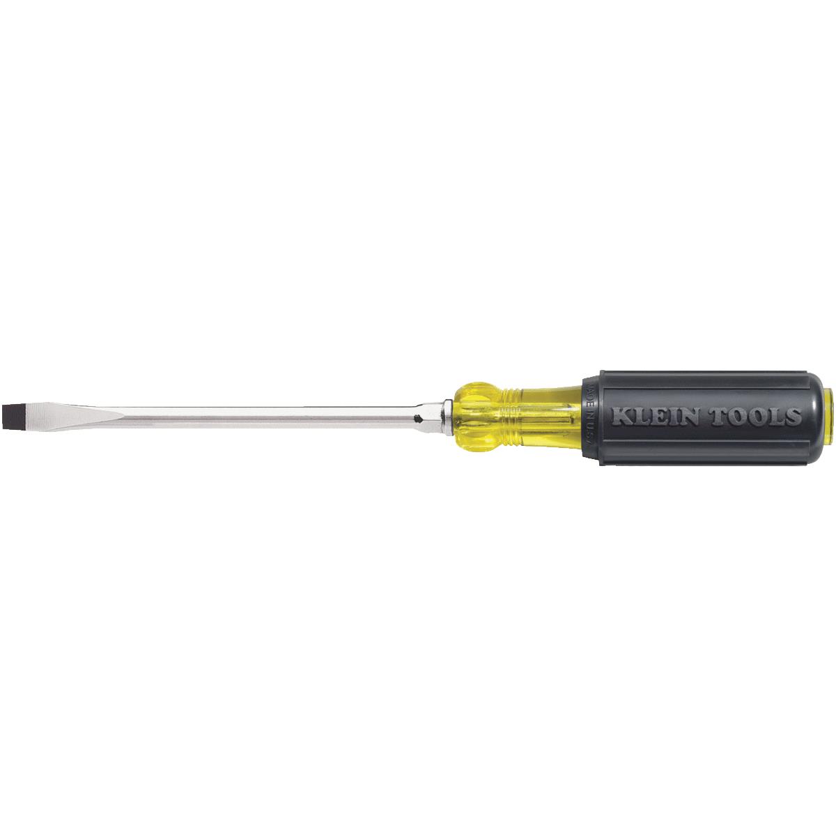 Heavy-duty round shank. Cushion-grip handle helps resist slippage. Heat-treated tempered steel blade is chrome-plated with black keystone tip. Bolster on blade at handle provides added strength and rigidity. Handle top is inscribed with tip description symbol. Bulk. No. 602-4: Size: 1/4 In., Blade Length: 4 In., Overall Length: 8-11/32 In., Pkg Qty: 1, Package Type: Clamshell No. 602-6: Size: 5/16 In., Blade Length: 6 In., Overall Length: 10-15/16 In., Pkg Qty: 1, Package Type: Clamshell. WARNING: Cancer and reproductive harm – See www.P65Warnings.ca.gov for more information.