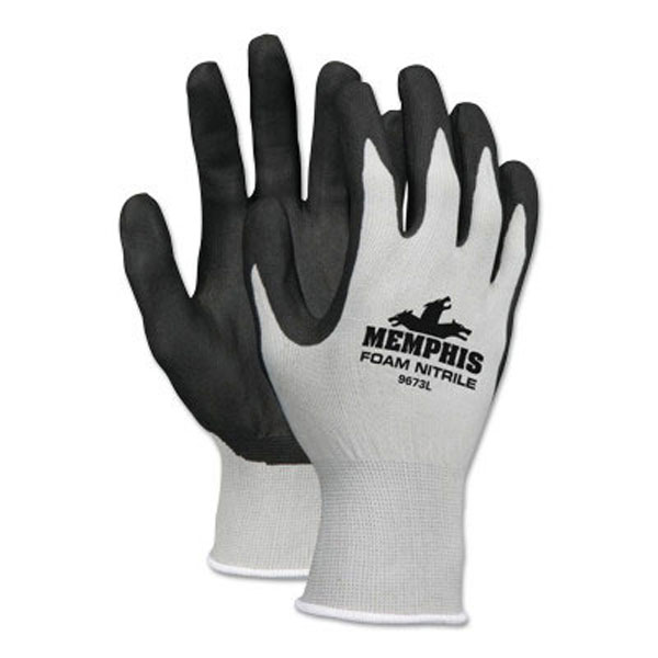 Foam Nitrile Gloves, Small, Black/Gray. Nitrile-coated nylon work gloves. Dipped palm and fingers provide secure grip. Ideal for small parts handling. Gloves are cool and breathable. Well suited for multi-industrial applications that require high dexterity. Coating=Nitrile. Color=Black/Gray. Cuff Color=Gray. Cuff Style=Knit-Wrist. Material=Nitrile; Nylon. Resistance=Abrasion; Cut; Puncture; Tear. Size Group=Small. Style=Palm and Finger Dipped. Thickness [Nom]=13 ga. WARNING: Cancer and Reproductive Harm – www.P65Warnings.ca.gov.
