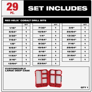 Milwaukee RED HELIX 29-Piece Cobalt Drill Bit Set, 1/16 In. thru 1/2 In. (48-89-2332)