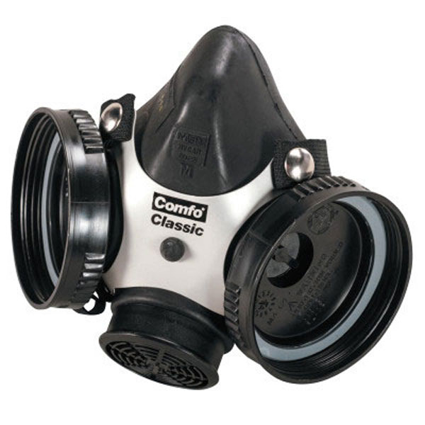 Comfo Classic Respirator, Medium, Silicone, Particles and Gases. SoftFeel® facepiece material increases the comfort factor dramatically. Unique face seal design that gives wearers an exceptional fit. Color-coded sizing system makes sorting and identification easy. Body Material=Silicone. Protected Area=Half Facepiece. Resistance=Particles; Gases. Size Group=Medium. Wt.=0.65 lb. .