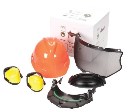 - V-Gard Accessory System Forestry Kits contain: Hi-viz orange V-Gard Cap with ratchet suspension, V-Gard Frame for Slotted Caps with Debris Control, V-Gard Mesh Visor Nitrometer, V-Gard Retractable Chin Protector, and Left/RIGHT, HIGH (NRR 28 db) Cap-Mounted Earmuffs