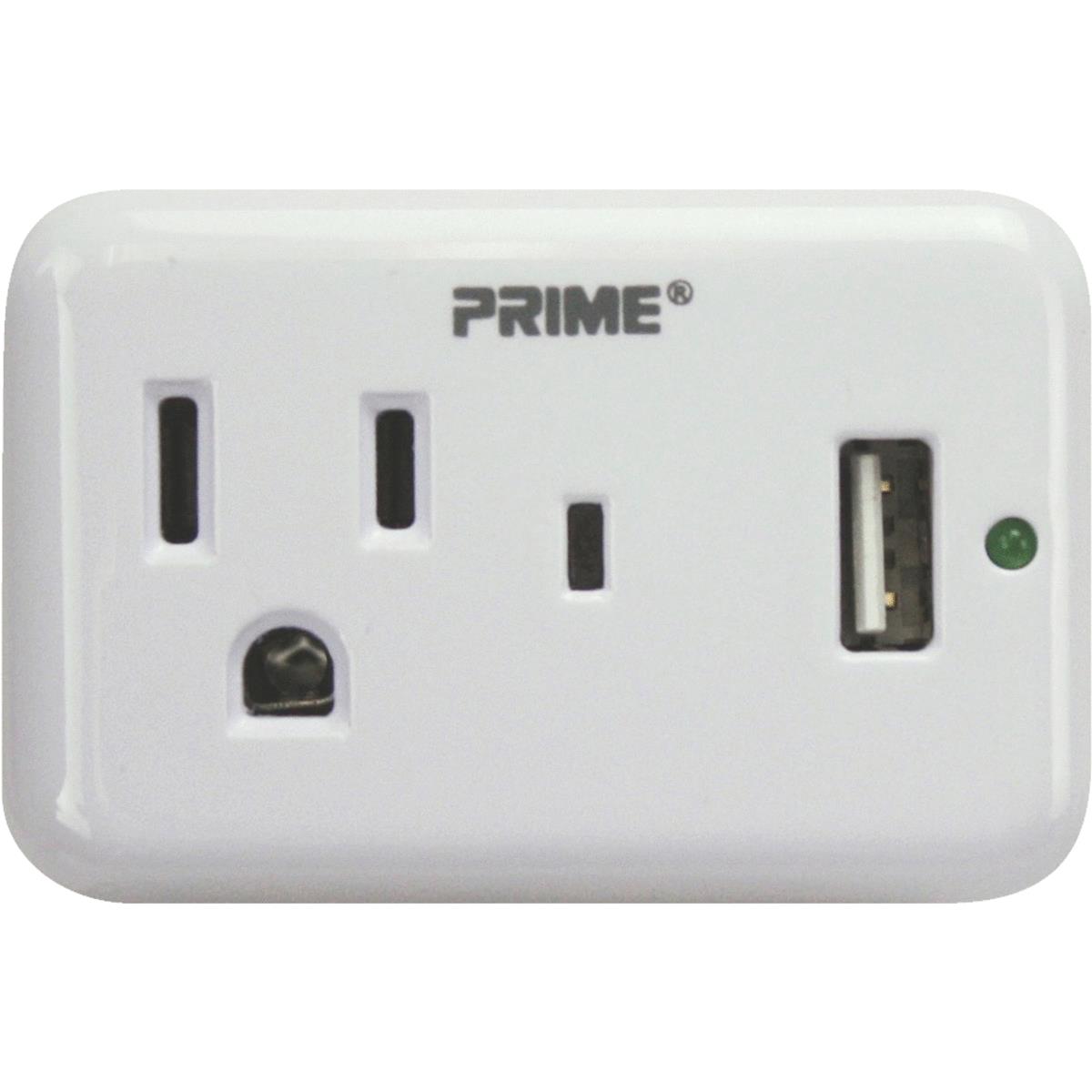 Plug-in outlet and USB (universal serial bus) port charger. Simply plug in to open power outlet. Features a compact design with faster USB charging compared to standard chargers. Includes a protected indicator light, 1 power outlet, and 1 USB port. 150 joules surge tap. 5 year warranty.