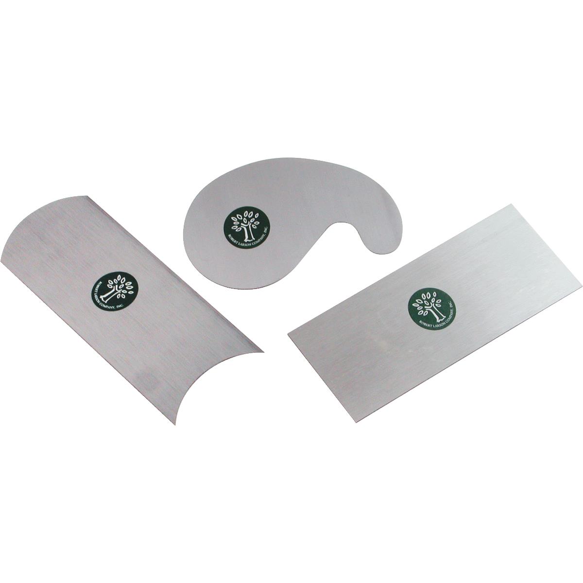 3-piece set of scrapers are made from the finest German steel. Rectangle, curved on opposite ends, and the classic goose-neck shape included in the set. Blades are 0.8mm in thickness. Use a burnisher to sharpen. No. 520-5510: Pieces In Set: 3 pcs, Pkg Qty: 3, Package Type: Bag.