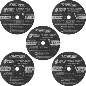 For use with the Rotozip spiral saw for tight cut-offs in most types of plastic and metal. 50% greater cutting capacity than a standard rotary tool for greater versatility and longer wheel life. Must be used with Direct Drive guard. Wheel diameter: 2-1/2″. Cutting depth: 3/4″. Speed rating: 30,000 RPM. 5 per pack.