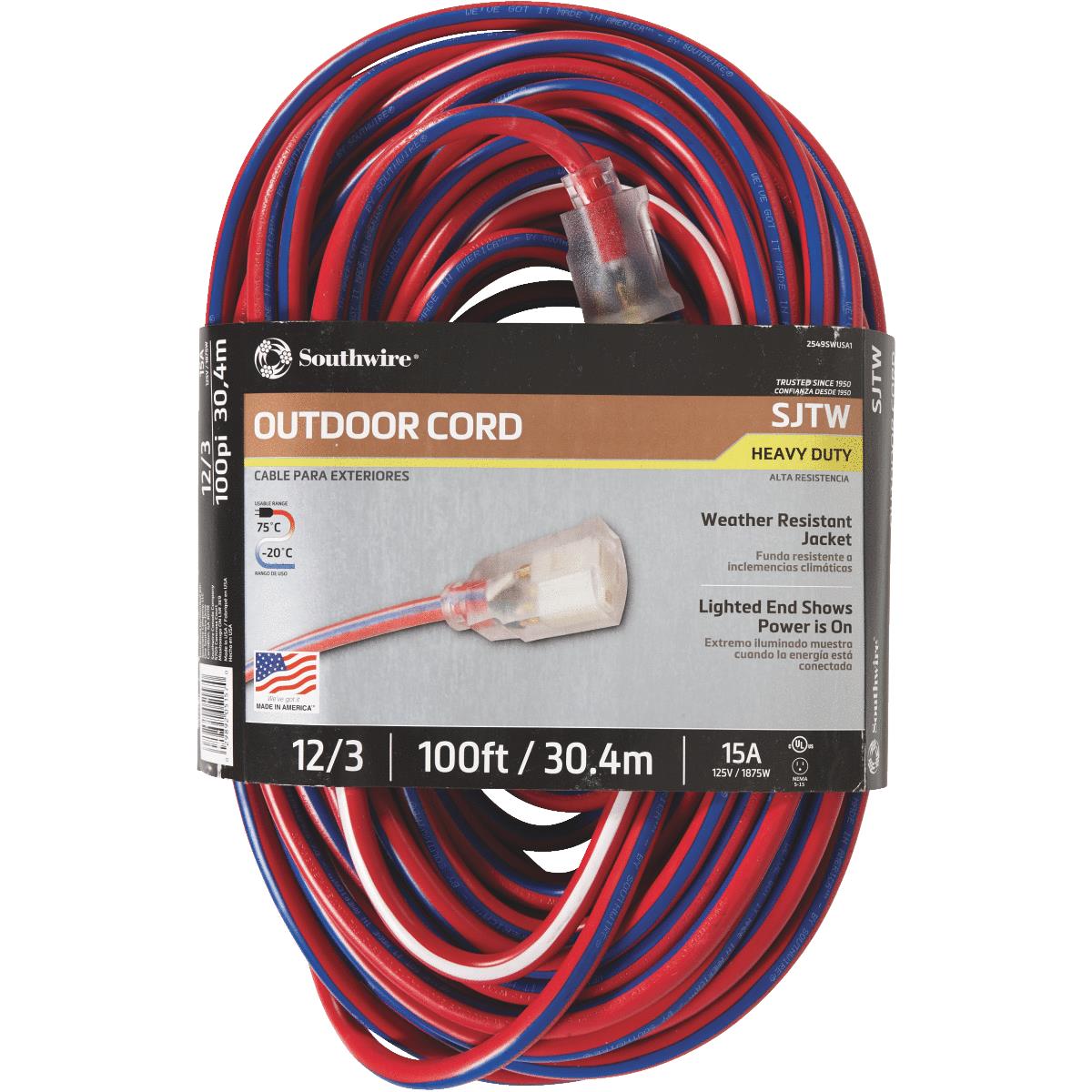 Yellow Jacket 25 Ft. 12/3 Heavy-Duty Extension Cord with Lighted End (2883AC)