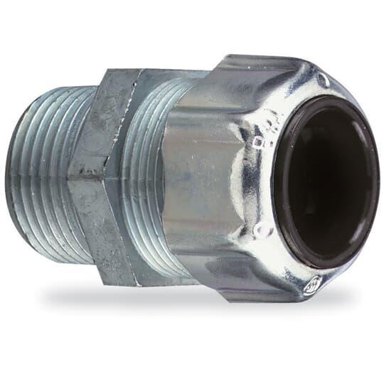 T&B Strain Relief Cord Connector, Liquidtight, Series: Ranger, 1/2 in, Cable Openings: 1/2 to 5/8 in, S/SO Cable, Thread, Die Cast Zinc, Zinc Plated, Metallic, 105 deg C, 1-3/8 in Dia x 1-3/4 in L